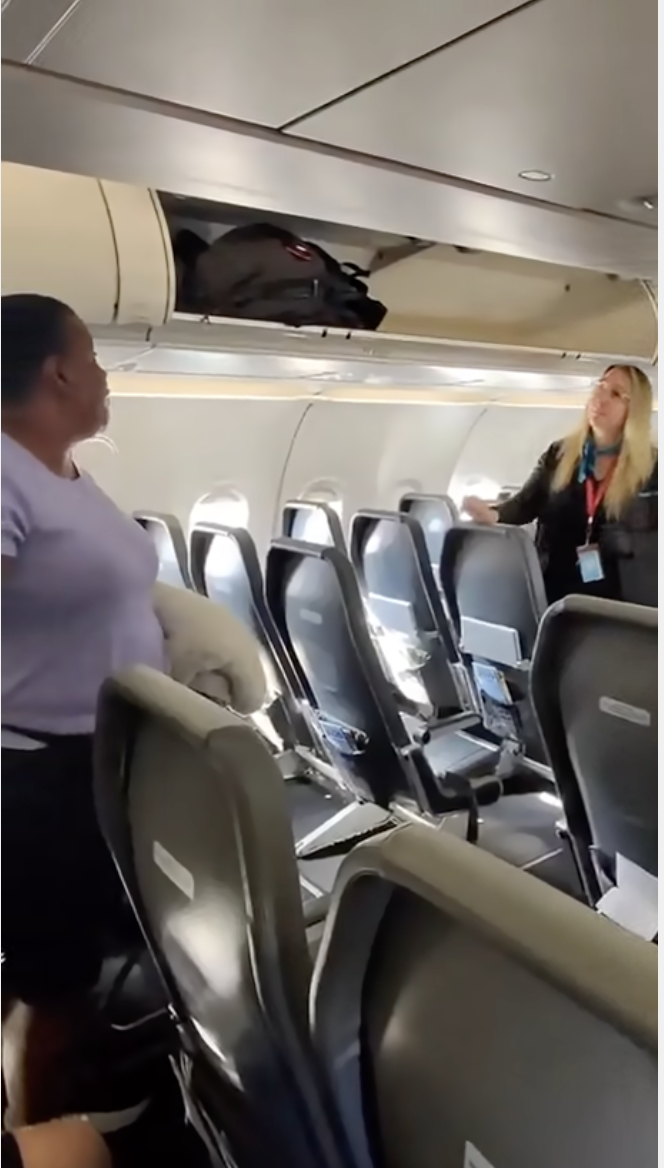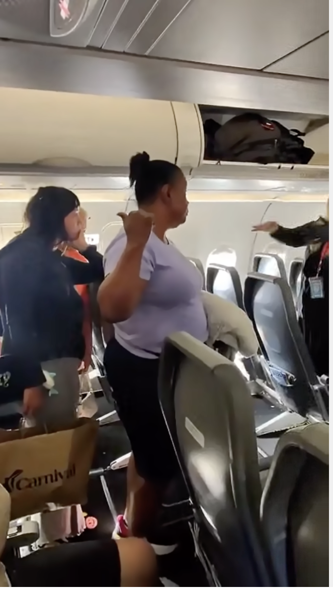 When confronted, she shifted her story—insisting her daughter was behind her—then refused to budge, holding up the disembarkation process. The flight attendant eventually persuaded her to step aside, at which point she shouted “f**k y’all” as she let others pass.